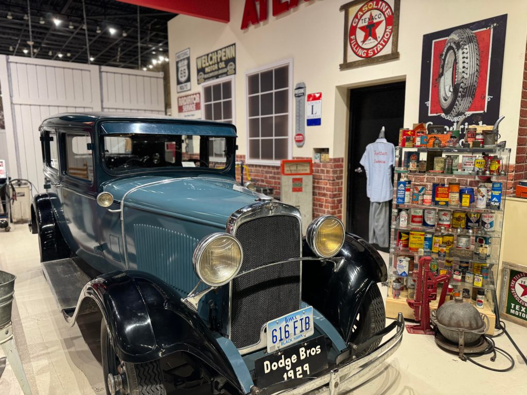 Step back in time at our recreated 1950s gas station, where vintage tools blend with modern devices, highlighting the evolution of technical prowess. Don’t miss our drive-in theater screen, complemented by the original ticket booth from the local Kearney Drive-In, offering a nostalgic glimpse into automotive entertainment history.
